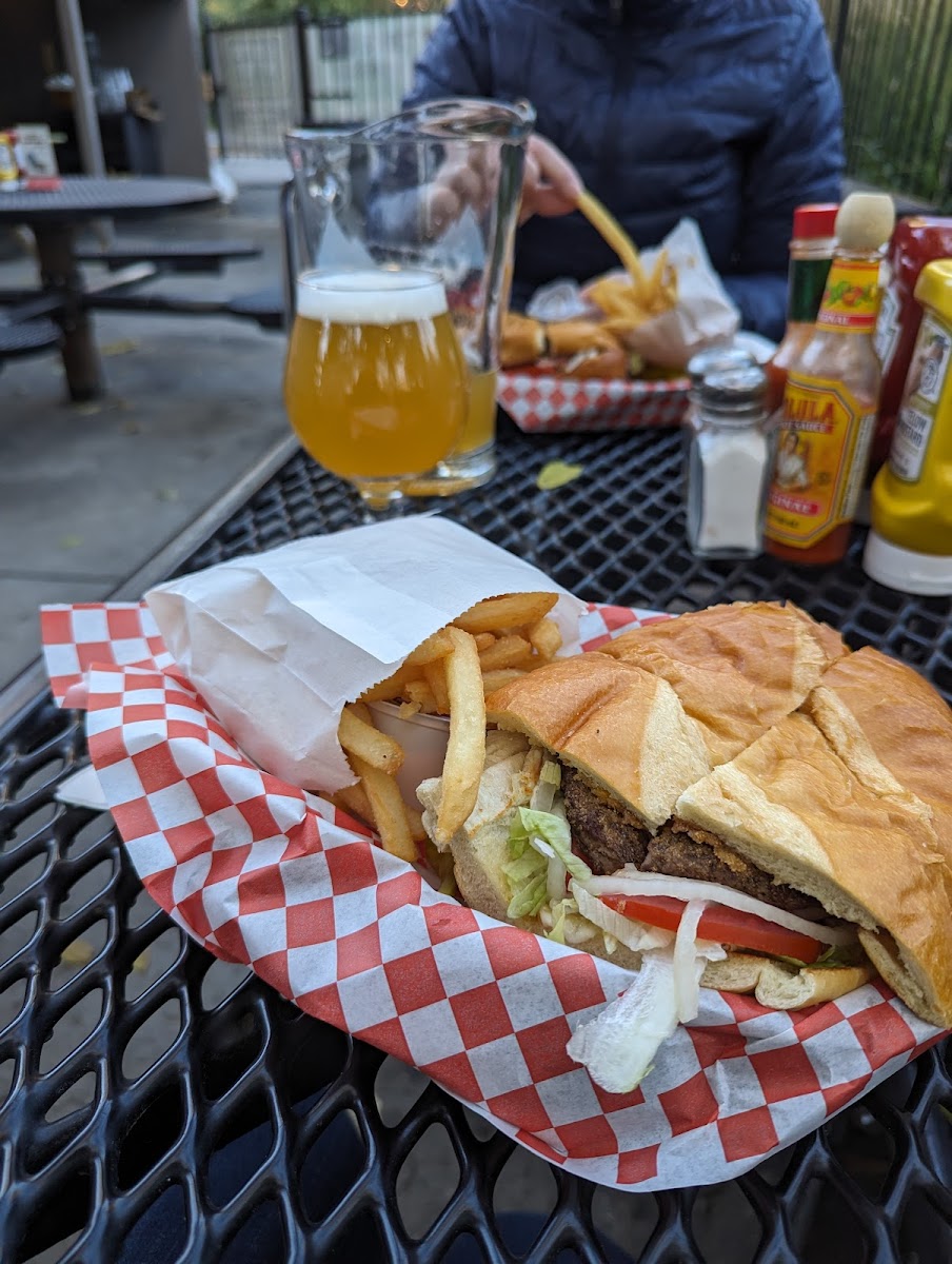 Super casual setting. Limited menu burgers, dogs & fries etc. Fun outdoor setting with picnic tables. Great beer and adult beverage selection. Fun stop with fast service.
